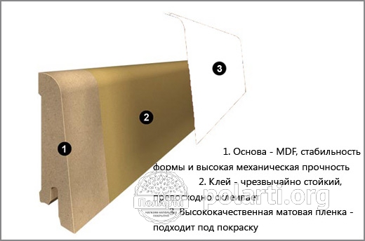 Высококачественная белая матовая пленка хорошо моется, а также дает возможность окрасить плинтус в любой понравившийся цвет.
