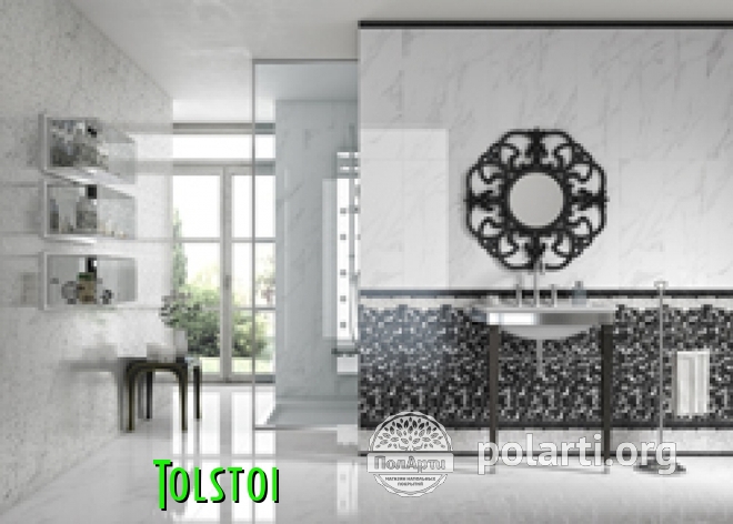 Tolstoi - элегантная коллекция матовой керамической плитки для создания роскошных интерьеров. Рисунок очень точно воспроизводит красоту натурального мрамора. Дополняют коллекцию специальные элементы в виде бордюров, (25,1х75,6; 2х25,1; 12х25,1).