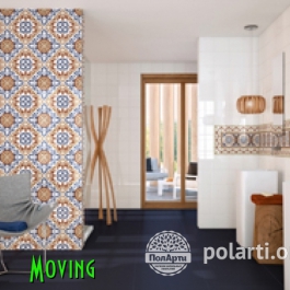 Moving - коллекция полированной керамической плитки с разнообразными динамичными орнаментами и декорами с нанесенными fashion изображениями, (20х20).