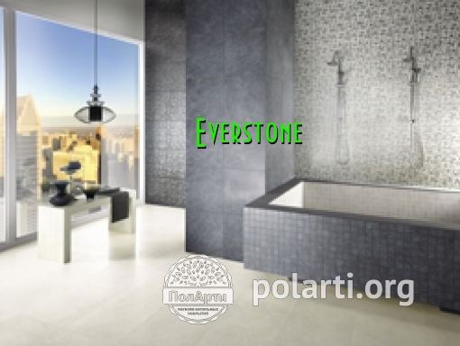 Everstone - керамогранит. Эксклюзивная коллекция! Фоновая плитка под камень и декоры с серебристым цветочным орнаментом (49x49).