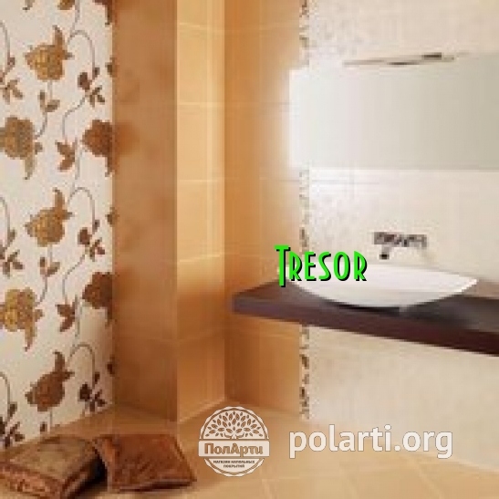 Tresor - керамическая плитка, изысканную элегантность которой придает сочетание современной классики и орнаментально-флористических декоров, переливающихся в лучах света (25х40).