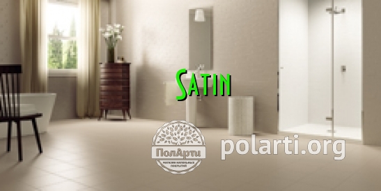 Satin - настенная керамическая плитка, украшенная рисунком из тонких полос. Дополнительные элементы - декоры с рельефными волнами. Пол - матовый керамогранит, (31х62,2; 5,8х62,2; 30х30).