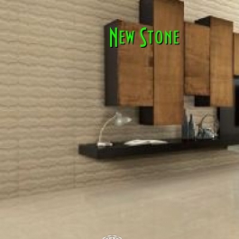 New Stone - полнотелый керамогранит под камень. Однотонная фоновая плитка в сочетании с мозаикой и плиткой, декорированной рельефным орнаментом, (60х60; 30х60).