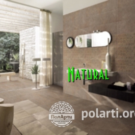 Natural - полнотелый керамогранит под камень. Наряду с однотонным фоном, коллекция представлена плиткой, поверхность которой украшена рельефными тоззетками (растительный и геометрический орнамент), а также нанесенными рельефными полосами, (30х60).